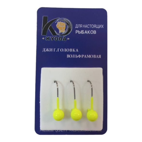 Джиг головка шар вольфрам KYODA крючок Kumho размер 8 вес 1,5 гр. цвет зелёный шартрез 3 шт